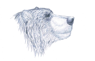 江左其杲手繪的洞熊頭部復原圖。