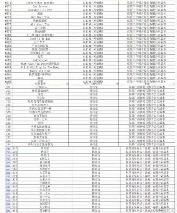 附件中共列出6609部要求下架的音樂電視作品。記者發(fā)現(xiàn),陳奕迅的《十年》《圣誕結(jié)》、信樂團的《死了都要愛》等大家耳熟能詳、幾乎是KTV必點曲目,也都在“下架”之列。