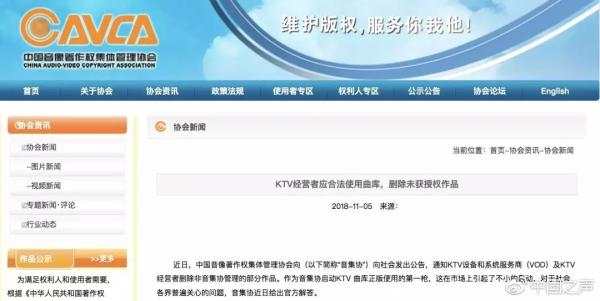 在公告中,音像著作權(quán)集體管理協(xié)會表示,為了降低已經(jīng)獲得該協(xié)會許可的各使用者的法律風險,要求卡拉OK終端生產(chǎn)商、向音集協(xié)繳費的卡拉OK經(jīng)營者,在10月31號前,將公告附件中列出的音樂電視作品刪除。從11月1號起,如因為沒有刪除所列音樂電視作品、而遭權(quán)利人主張權(quán)利,使用者需要自行承擔法律后果。