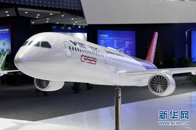 ??? 現(xiàn)場(chǎng)展示的CR929模型(11月7日攝)。 在第十二屆中國(guó)國(guó)際航空航天博覽會(huì)上,作為我國(guó)民用大飛機(jī)的研制主體,中國(guó)商用飛機(jī)有限責(zé)任公司展示了CR929遠(yuǎn)程寬體客機(jī)1:1樣機(jī),吸引了眾多觀眾參觀體驗(yàn)。 新華社記者 梁旭 攝