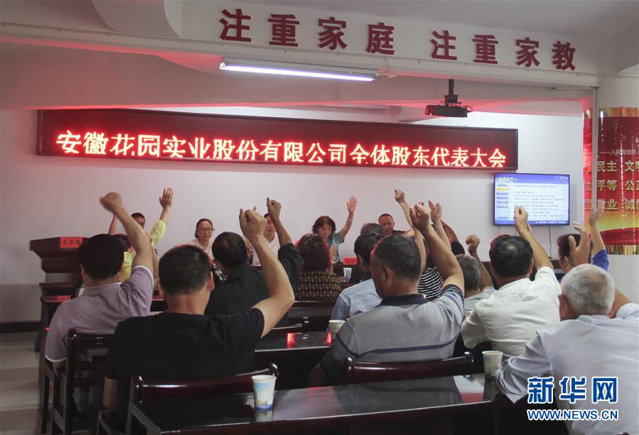 在安徽宣城花園村,來自安徽花園實(shí)業(yè)股份有限公司的股東全票通過股權(quán)激勵(lì)方案(2017年10月27日攝)。 新華社發(fā)