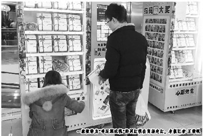 12月3日晚7點,記者來到位于北京西直門附近的凱德茂商場,商場地下一層人頭攢動。在通向商場一層扶梯附近的空地上擺放著三臺黃色的“幸運測試機”,明快的色調(diào)顯得十分醒目。