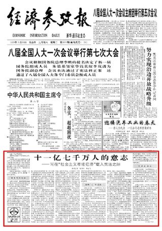1993年,“國(guó)家實(shí)行社會(huì)主義市場(chǎng)經(jīng)濟(jì)”被寫進(jìn)了憲法。