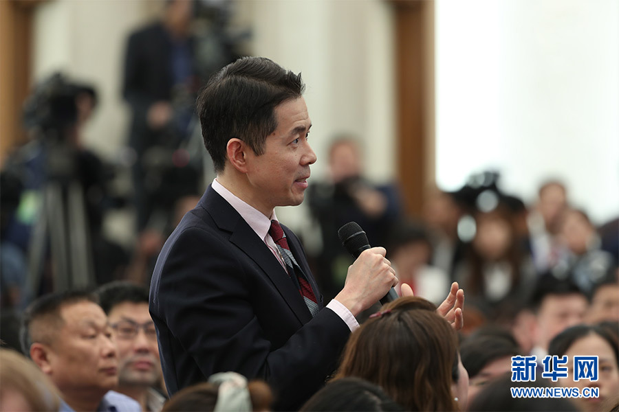 3月4日,十三屆全國人大一次會(huì)議在人民大會(huì)堂新聞發(fā)布廳舉行新聞發(fā)布會(huì),由大會(huì)發(fā)言人張業(yè)遂就大會(huì)議程和人大工作相關(guān)的問題回答中外記者的提問。圖為CNN記者提問。新華網(wǎng)/中國政府網(wǎng) 翟子赫 攝