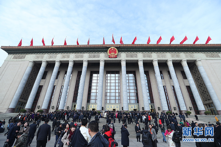 ??? 3月5日,第十三屆全國(guó)人民代表大會(huì)第一次會(huì)議在北京人民大會(huì)堂開(kāi)幕,圖為人民大會(huì)堂外景。?新華網(wǎng)/中國(guó)政府網(wǎng) 翟子赫?攝