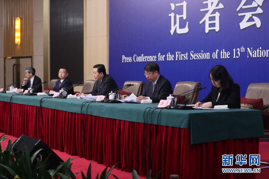 十三屆全國人大一次會議新聞中心于3月7日上午在梅地亞中心多功能廳舉行記者會,邀請財政部部長肖捷,副部長史耀斌、胡靜林就“財稅改革和財政工作”相關問題回答中外記者提問。圖為記者會現(xiàn)場。新華網/中國政府網?陳杰 攝