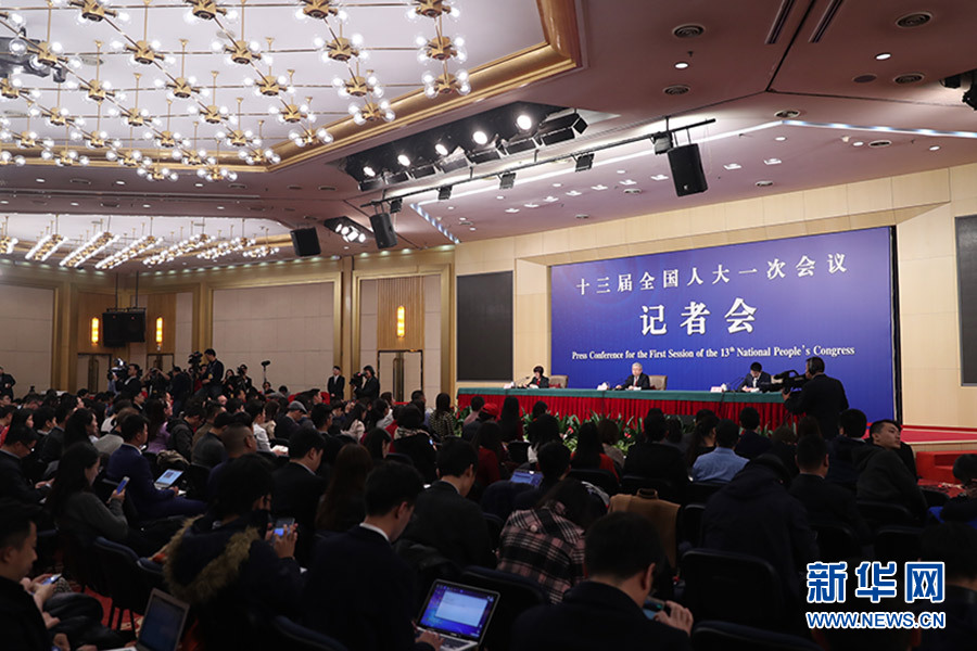 十三屆全國人大一次會議新聞中心于3月7日在梅地亞中心多功能廳舉行記者會,邀請國務(wù)院扶貧辦主任劉永富就“打好精準(zhǔn)脫貧攻堅(jiān)戰(zhàn)”的相關(guān)問題回答中外記者的提問。圖為記者會現(xiàn)場。新華網(wǎng)/中國政府網(wǎng) 陳杰 攝