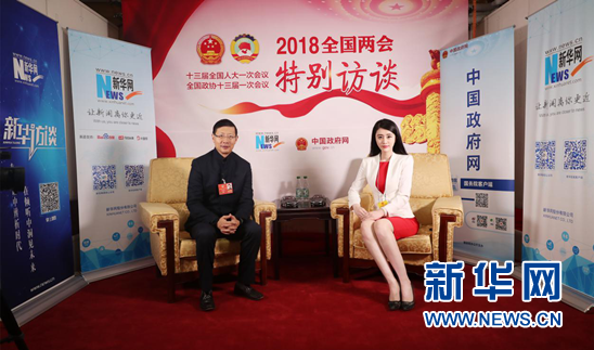 ??? 6日,第十三屆全國人大代表、江蘇揚(yáng)子江藥業(yè)集團(tuán)黨委書記、董事長兼總經(jīng)理徐鏡人做客新華網(wǎng)2018全國兩會(huì)特別訪談,與網(wǎng)友在線交流。新華網(wǎng) 楊锘攝