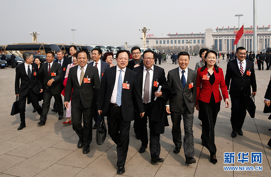 ??? 十三屆全國人大一次會議9日下午3時在人民大會堂舉行第二次全體會議,聽取最高人民法院院長周強關(guān)于最高人民法院工作的報告,聽取最高人民檢察院檢察長曹建明關(guān)于最高人民檢察院工作的報告。圖為代表們走向會場。新華網(wǎng)/中國政府網(wǎng)?陳杰 攝