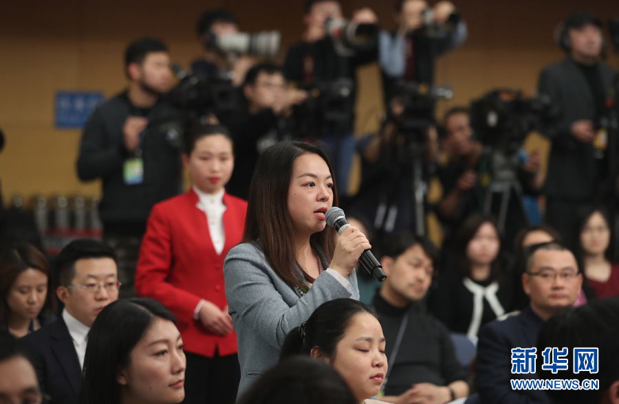 ??? 十三屆全國人大一次會議新聞中心3月10日15時(shí)在梅地亞中心多功能廳舉行記者會,邀請國務(wù)院國資委主任肖亞慶,副秘書長、新聞發(fā)言人彭華崗就“國有企業(yè)改革發(fā)展”相關(guān)問題回答中外記者提問。圖為財(cái)新周刊記者提問。新華網(wǎng)/中國政府網(wǎng)?曲植 攝?