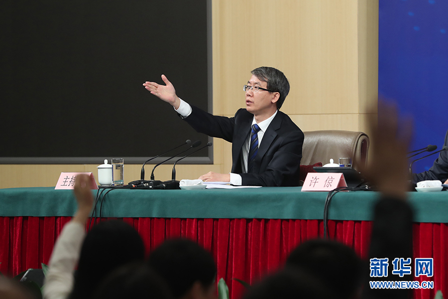 十三屆全國人大一次會(huì)議新聞中心3月10日上午10時(shí)45分在梅地亞中心多功能廳舉行記者會(huì),邀請(qǐng)科技部部長萬鋼、政策法規(guī)與監(jiān)督司司長賀德方、創(chuàng)新發(fā)展司司長許倞就“加快建設(shè)創(chuàng)新型國家”相關(guān)問題回答中外記者提問。圖為記者會(huì)主持人。 新華網(wǎng)/中國政府網(wǎng) 陳杰 攝