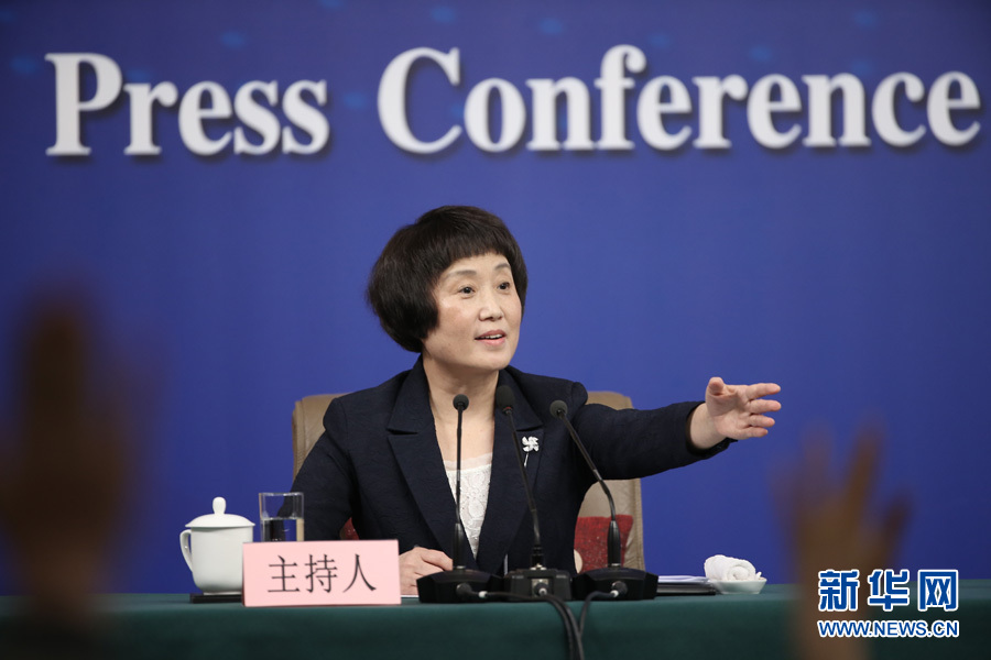 十三屆全國人大一次會(huì)議新聞中心3月10日15時(shí)在梅地亞中心多功能廳舉行記者會(huì),邀請國務(wù)院國資委主任肖亞慶,副秘書長、新聞發(fā)言人彭華崗就“國有企業(yè)改革發(fā)展”相關(guān)問題回答中外記者提問。圖為記者會(huì)主持人。新華網(wǎng)/中國政府網(wǎng) 翟子赫 攝