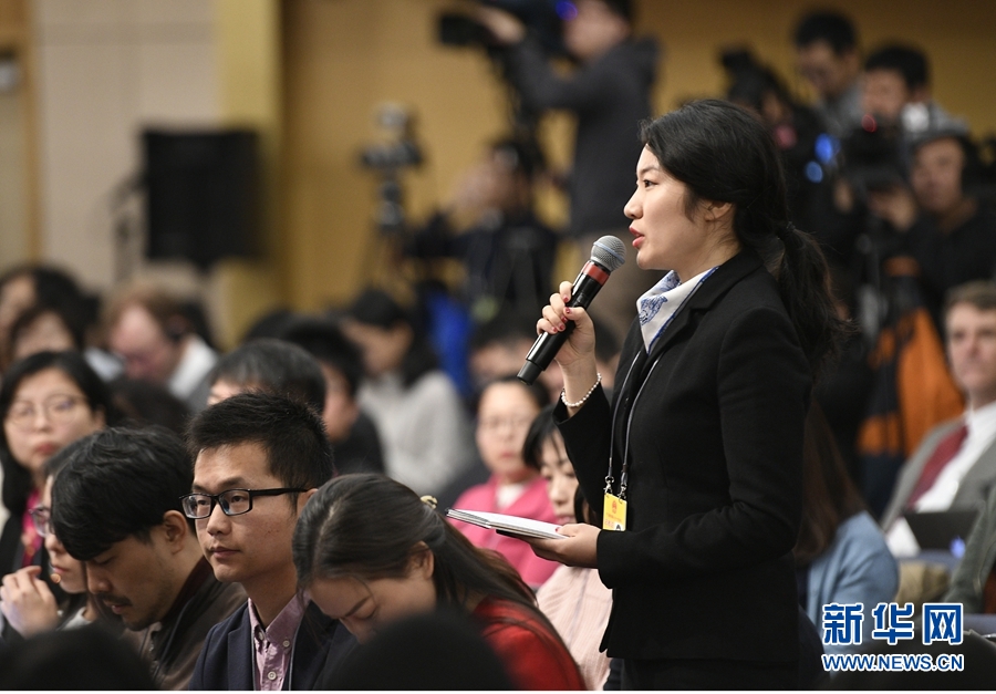 3月11日,十三屆全國人大一次會議新聞中心舉行記者會,邀請商務部部長鐘山、副部長兼國際貿(mào)易談判副代表王受文、副部長錢克明就“推動形成全面開放新格局推動商務事業(yè)高質(zhì)量發(fā)展”相關問題回答中外記者提問。這是記者在提問。 新華社記者 王鵬 攝