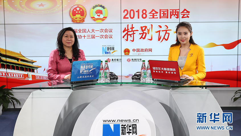 圖為全國(guó)政協(xié)委員、新大陸科技集團(tuán)總裁王晶做客新華網(wǎng)2018全國(guó)兩會(huì)特別訪談 新華網(wǎng)郭小天攝