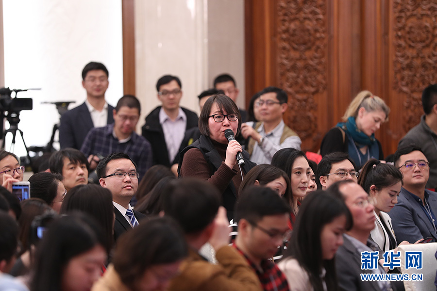 3月11日,十三屆全國人大一次會議新聞中心在人民大會堂一樓新聞發(fā)布廳舉行記者會,邀請十三屆全國人大一次會議秘書處法案組組長、全國人大常委會法工委主任沈春耀,法案組副組長、全國人大常委會法工委副主任鄭淑娜就“憲法修正案”相關(guān)問題回答中外記者提問。圖為新京報記者提問。新華網(wǎng)/中國政府網(wǎng) 陳杰 攝