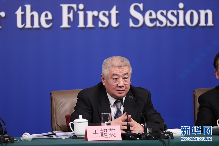 3月12日,十三屆全國人大一次會議新聞中心在梅地亞中心多功能廳舉行記者會,邀請十二屆全國人大內司委副主任委員王勝明、財經(jīng)委副主任委員烏日圖、教科文衛(wèi)委副主任委員吳恒、環(huán)資委委員呂彩霞,全國人大常委會法工委副主任王超英、副主任許安標就“人大立法工作”相關問題回答中外記者提問。圖為全國人大常委會法工委副主任王超英回答記者提問。新華網(wǎng)/中國政府網(wǎng) 翟子赫 攝