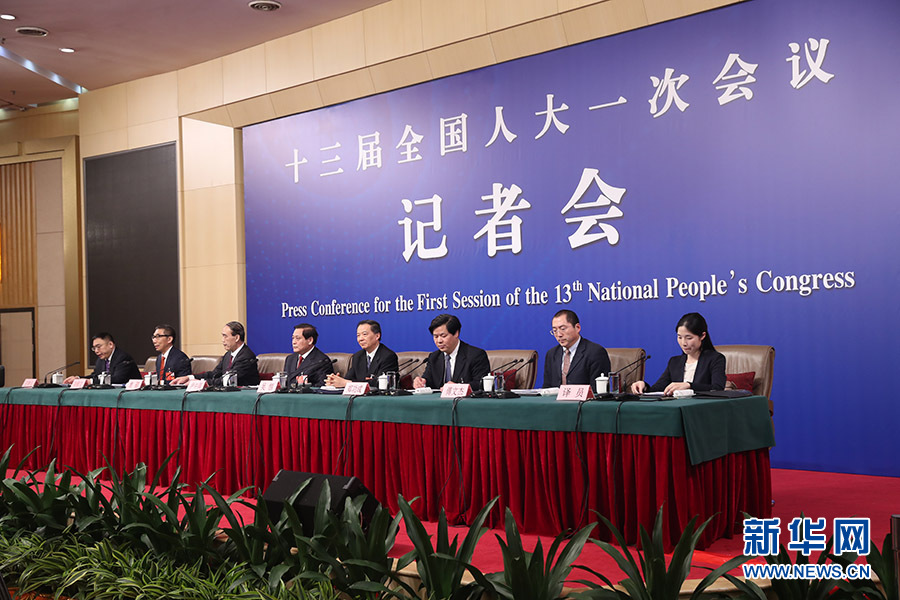 十三屆全國人大一次會議新聞中心于3月12日15時在梅地亞中心多功能廳舉行記者會,邀請十二屆全國人大財經(jīng)委副主任委員尹中卿、教科文衛(wèi)委副主任委員吳恒、環(huán)資委副主任委員袁駟、內(nèi)司委委員鄭功成,全國人大常委會預算工委副主任劉修文、常委會辦公廳秘書局巡視員傅文杰就“人大監(jiān)督工作”相關問題回答中外記者提問。圖為記者會現(xiàn)場。新華網(wǎng)/中國政府網(wǎng) 陳杰?攝