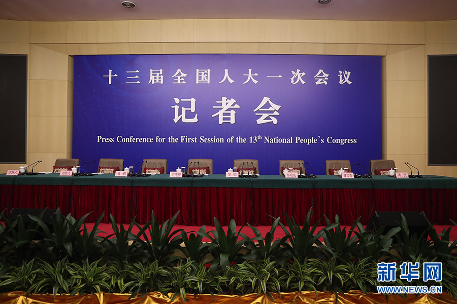 3月12日,十三屆全國(guó)人大一次會(huì)議新聞中心在梅地亞中心多功能廳舉行記者會(huì),邀請(qǐng)十二屆全國(guó)人大財(cái)經(jīng)委副主任委員尹中卿、教科文衛(wèi)委副主任委員吳恒、環(huán)資委副主任委員袁駟、內(nèi)司委委員鄭功成,全國(guó)人大常委會(huì)預(yù)算工委副主任劉修文、常委會(huì)辦公廳秘書局巡視員傅文杰就“人大監(jiān)督工作”相關(guān)問(wèn)題回答中外記者提問(wèn)。圖為記者會(huì)開始前。新華網(wǎng)/中國(guó)政府網(wǎng)?陳杰 攝