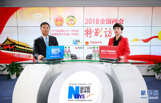 圖為全國(guó)人大代表、河南省輝縣市張村鄉(xiāng)裴寨村黨支部書(shū)記裴春亮做客新華網(wǎng)2018全國(guó)兩會(huì)特別訪談 新華網(wǎng) 范作言 攝