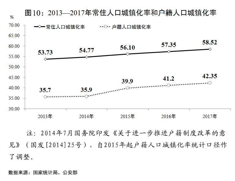 五是以人為核心的新型城鎮(zhèn)化建設扎實推進。農(nóng)業(yè)轉移人口市民化有序推進,戶籍制度改革和居住證制度落地實施。全國常住人口城鎮(zhèn)化率達到58.52%,戶籍人口城鎮(zhèn)化率達到42.35%,均比上年增加1個百分點左右。城鎮(zhèn)化空間格局持續(xù)優(yōu)化,長三角、長江中游、成渝、哈長、中原、北部灣等城市群規(guī)劃加快實施,關中平原、呼包鄂榆等跨省區(qū)城市群規(guī)劃編制完成。以市場化方式規(guī)范推進特色小鎮(zhèn)和小城鎮(zhèn)建設。新型城鎮(zhèn)化綜合試點取得積極進展。