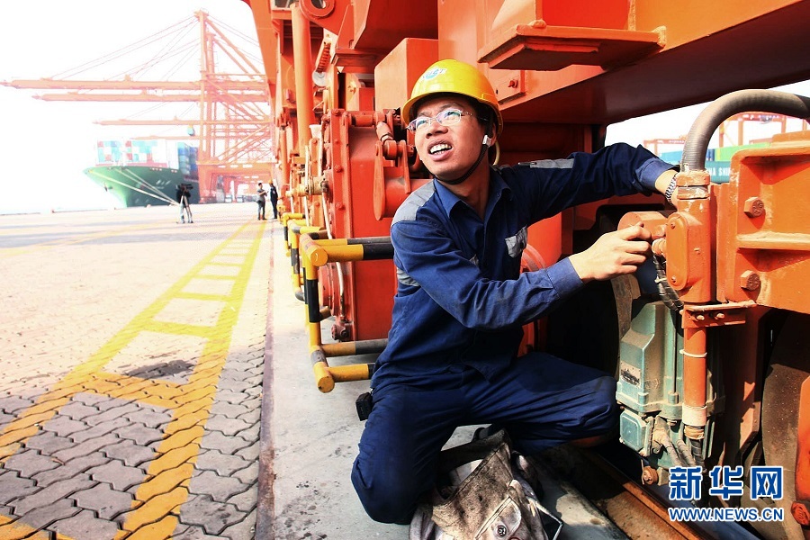 馮鴻昌在檢修港口設(shè)備(2007年12月7日攝)。從業(yè)21年,馮鴻昌從一名普通學(xué)徒起步,一步步成長(zhǎng)為廈門集裝箱碼頭集團(tuán)有限公司高級(jí)技師、全國(guó)勞動(dòng)模范,榮獲中華技能大獎(jiǎng)。他的微信頭像里,“匠人匠心”四個(gè)字分外顯眼。逐夢(mèng)征程,需要價(jià)值追求的引領(lǐng)和精神力量的支撐。新華社記者 姜克紅 攝