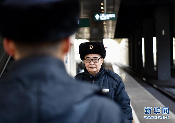 1月16日,李誠(chéng)在西寧站巡查是否有旅客誤乘。新華社發(fā)(張龍 攝)