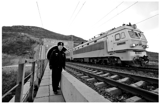 56歲的老民警朱效國(guó)已經(jīng)有些駝背了,但精神狀態(tài)很好。他介紹,下納嶺特大橋全長(zhǎng)3.8公里,橋離地面高度約50米,恐高的人可巡不完線(xiàn)路。冬季天冷倒不怕,就怕刮風(fēng),橋太高了,很危險(xiǎn)。只要不刮風(fēng)就是好天氣。我們巡線(xiàn)的目的就是,一是看線(xiàn)路上的設(shè)備有沒(méi)有損壞的,另一個(gè)就是看看有沒(méi)有危害火車(chē)安全的,有沒(méi)有山上滾下的落石和其他雜物,以保障列車(chē)通行安全。