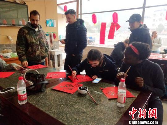 今年春節(jié),武義縣西聯(lián)鄉(xiāng)大溪口自然村就迎來了一支100多人的旅游團,團友是清一色的外國游客。從大年三十開始到正月初四,這批來自上海的外籍友人在村中登山探險、走訪農(nóng)家、學寫對聯(lián)。