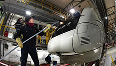 將溫暖運往四海八方的同時,寒冷卻是這里冬天的主旋律。每到夜幕降臨,位于郊區(qū)的編組站氣溫驟降,而調車員仍需要爬上列車,通過反復地緊閘、松閘來調節(jié)溜放速度,這時候風就直往衣領里鉆?!袄滹L容易刮臉!我還沒找女朋友,要好好保養(yǎng)?!币慌蝿战Y束,回到值班室的張曉洪一邊開著玩笑,一邊將防凍裂軟膏涂在臉上。