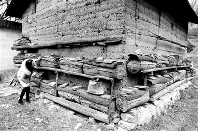 道路的盡頭是一戶被“圓木棒棒”包圍的人家。這家主人姓謝,祖祖輩輩生活在這里,幾乎沒(méi)有離開(kāi)過(guò)身后的大山。滿山的核桃樹(shù)和環(huán)繞自家房屋的蜂巢,是老謝一家的主要收入來(lái)源。