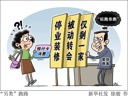 預(yù)付卡商家跑路消失,消費(fèi)者遭遇維權(quán)難已不是新鮮事。然而記者調(diào)查發(fā)現(xiàn),為了躲避判罰,拖延賠付時(shí)間,不少預(yù)付卡商家開(kāi)始上演“另類”跑路——“停業(yè)裝修”“被動(dòng)轉(zhuǎn)會(huì)”“僅剩一家”等戲碼輪番上演,制造出一種“似跑非跑”的現(xiàn)象,讓消費(fèi)者陷入維權(quán)困境。