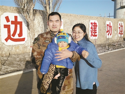 指導員楊浩的妻子田茹是在去年除夕夜真正讀懂丈夫的。那天夜里,她陪著丈夫在連隊站崗,頭頂滿天繁星,腳下戈壁遼闊,遠方煙花絢爛,耳邊爆竹聲聲……“他守著國,我守著他”。