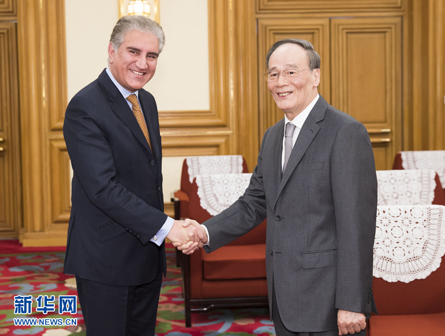 會(huì)見庫雷希時(shí),王岐山表示,中巴是好鄰居。中巴友誼歷經(jīng)時(shí)間和國際風(fēng)云變幻考驗(yàn),得到兩國人民真心擁護(hù)。近年來,兩國領(lǐng)導(dǎo)人往來頻繁,全天候戰(zhàn)略合作伙伴關(guān)系不斷取得新進(jìn)展。在相互理解、相互信任基礎(chǔ)上建設(shè)睦鄰友好關(guān)系,營造良好周邊環(huán)境,是一國實(shí)現(xiàn)和平發(fā)展的重要條件。中方支持巴方抓住機(jī)遇、應(yīng)對挑戰(zhàn),妥善處理鄰國關(guān)系,實(shí)現(xiàn)巴基斯坦穩(wěn)定發(fā)展。希望兩國繼續(xù)深化全方位合作,推動(dòng)中巴經(jīng)濟(jì)走廊等“一帶一路”重要先行先試項(xiàng)目取得更多成果。