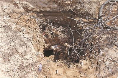 2014年夏季的一個雨夜過后,當?shù)卮迕癜l(fā)現(xiàn)寶頂周圍一片狼藉,地里的蔬菜被踩得東倒西歪,雜亂的腳印徑直通向?qū)氻?,寶頂前的泥土一夜之間變得新鮮松軟,像是被人松動過。村民判斷,必定是有人在夜幕的掩護下,悄悄潛入小院對寶頂進行盜挖,而后回填是為掩人耳目。這伙人挖了多深、挖到了什么則不得而知。此后,村民在澆地時,盜挖處出現(xiàn)沉降,并隱約露出一個盜洞口。