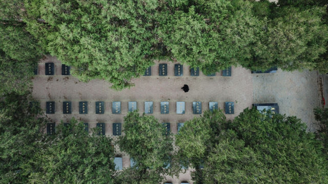 3月21日,張景憲走在張和莊烈士陵園內(nèi)(無(wú)人機(jī)拍攝)。