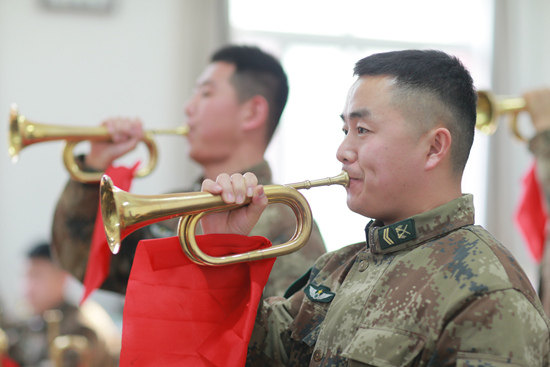 “把這些人培養(yǎng)成‘種子’,然后去各個部隊‘開枝散葉’,帶動更多的人學會軍號?!痹诹赫俳窨磥恚瑑蓚€月的培訓時間里,這些學員除了學會熟練吹號,還要掌握教學方法。目前看來,這項計劃進展順利。