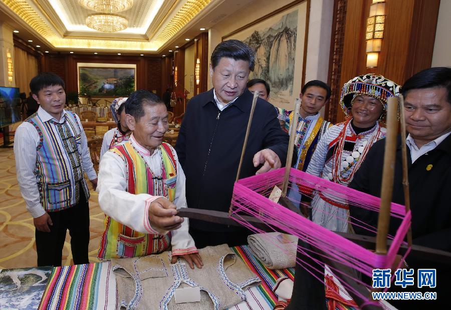 2015年1月20日,習近平向獨龍族群眾代表詢問民族特有生產(chǎn)工具使用情況