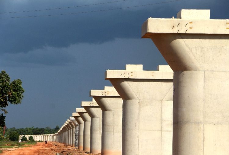 ↑2018年6月14日的老撾萬(wàn)象楠科內(nèi)河特大橋橋墩。墩身澆筑完成標(biāo)志著中老鐵路全線(xiàn)最長(zhǎng)橋梁主體工程順利完工。 新華社發(fā)