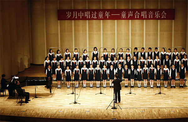 2012年12月2日,北京大學(xué)上演《歲月中唱過(guò)童年》童聲合唱音樂(lè)會(huì)。演唱會(huì)以近現(xiàn)代中國(guó)兒童音樂(lè)發(fā)展史為構(gòu)思脈絡(luò),精心選取近20首精彩曲目,涵蓋了從李叔同的《送別》等經(jīng)典歌曲。 新華社記者 劉彬 攝