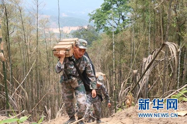 在云南麻栗坡,杜富國(guó)向雷場(chǎng)外轉(zhuǎn)運(yùn)炸藥(2015年4月26日攝)。?新華社發(fā)(黃巧 攝)