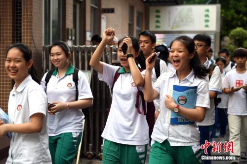 資料圖:6月8日,廣州華師附中考點(diǎn),考生在考試結(jié)束后輕松走出考場(chǎng)。中新社記者 姬東 攝