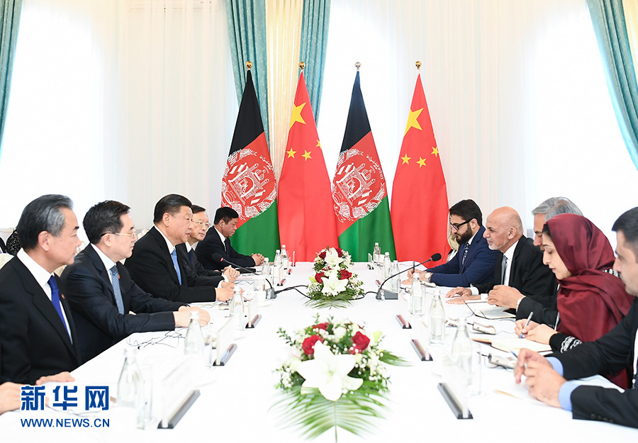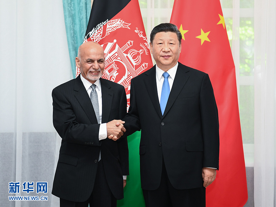 6月13日,國(guó)家主席習(xí)近平在比什凱克會(huì)見阿富汗總統(tǒng)加尼。 新華社記者 謝環(huán)馳 攝