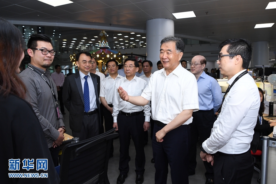6月14日至16日,中共中央政治局常委、全國政協(xié)主席汪洋在出席第十一屆海峽論壇期間,深入閩江學院、網龍臺灣青年就業(yè)創(chuàng)業(yè)基地、廈門(集美)閩臺研學旅行基地、玉晶光電(廈門)有限公司調研,并與在大陸工作學習的臺灣青年代表座談。這是6月14日汪洋在福州網龍臺灣青年就業(yè)創(chuàng)業(yè)基地調研。 新華社記者 饒愛民 攝
