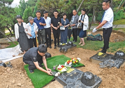 昨日早晨8點(diǎn),在親屬陪伴下,第250份烈士骨灰由八寶山革命公墓烈士骨灰堂遷葬至公墓新建的烈士紀(jì)念園。按計(jì)劃,革命公墓烈士骨灰堂現(xiàn)存的680份骨灰將于本月底前完成遷葬。