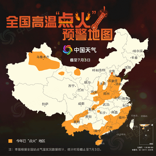中國(guó)天氣網(wǎng)統(tǒng)計(jì)了近38年來(lái)全國(guó)各地一年中高溫最集中時(shí)段,從高溫“點(diǎn)火日”、“熄火日”以及“點(diǎn)火”與“熄火”期間的火爐“燃燒日”三個(gè)角度,幫助大家掐準(zhǔn)高溫“火爐”的火候。趁南方高溫尚未進(jìn)入鼎盛,一起來(lái)看看大家離真正的高溫“旺火”還有多遠(yuǎn)?