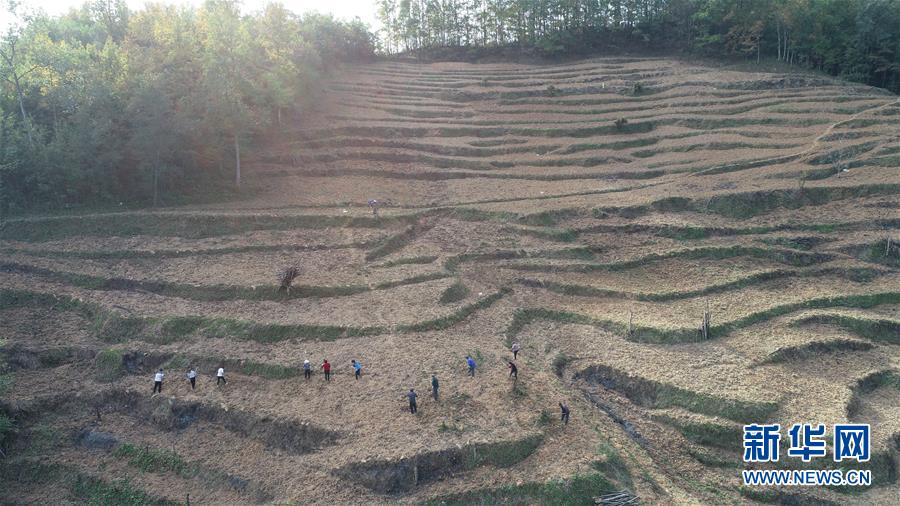 在四川省青川縣青坪村,當(dāng)?shù)卮迕裨诜N植白茶(2018年10月29日無(wú)人機(jī)拍攝)。新華社記者 王天聰 攝