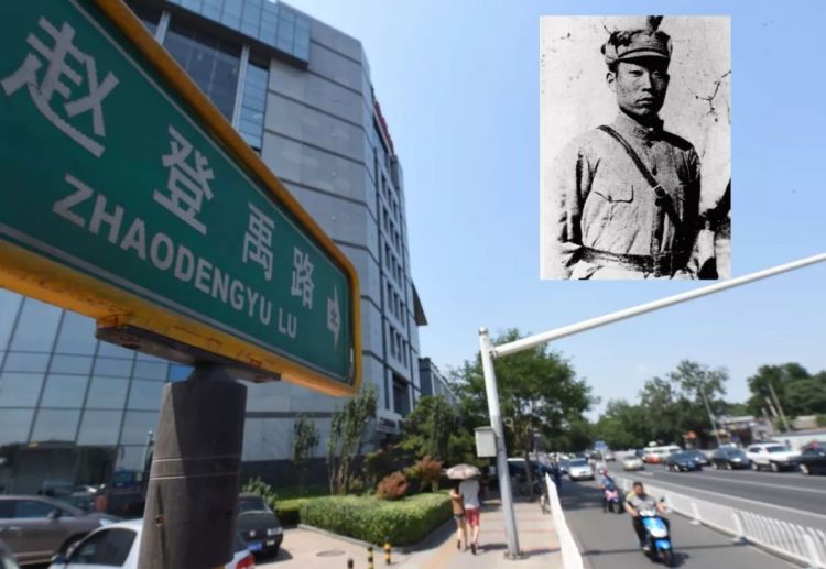 北京西城區(qū)趙登禹路,右上角為趙登禹像(拼版照片)。新華社記者 羅曉光 攝
