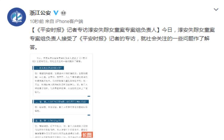 今日,淳安失蹤女童案專案組負責人接受了《平安時報》記者的專訪,就社會關(guān)注的一些問題作了解答。