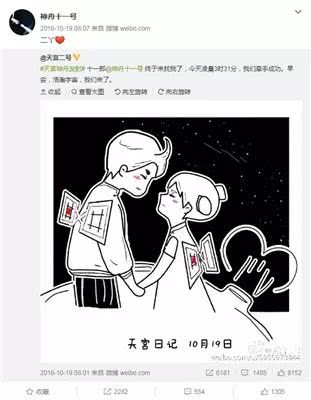 神舟十一號與天宮二號微博賬號互動(來源:神舟十一號微博)