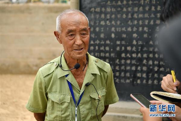 8月8日,83歲的甘泉縣象鼻子灣村村民賈生貴講述當(dāng)年“雪地講話”的情形。新華社記者 張博文 攝